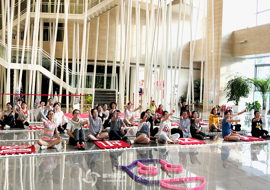 隨著骨牌的啟動,“客訴達(dá)人”、“創(chuàng)造美、傳遞愛”、愛慕LOGO畫面順序成功呈現(xiàn)。各隊(duì)的創(chuàng)意作品,也分別在講解完創(chuàng)意理念后觸發(fā)。短短幾小時(shí),愛慕的“客訴達(dá)人”成功變身“多米諾達(dá)人”,看到通過大家共同努力而取得的圓滿成功,隊(duì)員們都?xì)g呼雀躍、喜不自勝,愛慕學(xué)院的多米諾活動現(xiàn)場再次成為一片歡樂的海洋。