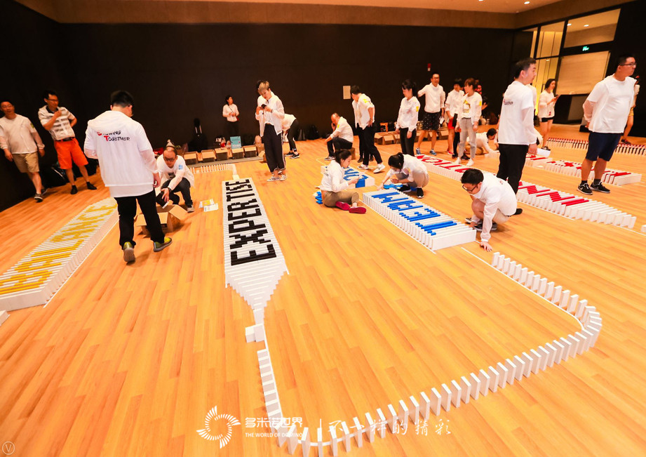 很多人都是初次與多米諾親密接觸,其中還有中文并不精通的國(guó)際友人參與,要在120分鐘的時(shí)間內(nèi)共同完成一幅絲芙蘭多米諾畫(huà)卷,是一個(gè)極大的挑戰(zhàn),需要大家的積極努力與默契配合。多米諾世界的專業(yè)老師,就根據(jù)現(xiàn)實(shí)狀況做好了充分的準(zhǔn)備,雙語(yǔ)任務(wù)書(shū)、雙語(yǔ)講義、詳細(xì)的圖示講解、充足的人力調(diào)配,以確?;顒?dòng)的順利完成。