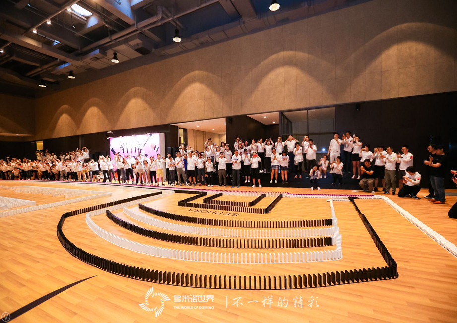 活動(dòng)現(xiàn)場(chǎng),朝氣蓬勃的絲芙蘭精英們,認(rèn)真聆聽(tīng)多米諾世界老師的技術(shù)培訓(xùn),有序安排組內(nèi)任務(wù),大家很快便進(jìn)入狀態(tài),投身到精彩的多米諾世界中。經(jīng)過(guò)大家的努力,一幅幅多米諾畫(huà)面碼放完成。粉色、紫色組成的絲芙蘭之路色彩斑斕,絲芙蘭大廈線條流暢、惟妙惟肖,絲芙蘭行動(dòng)價(jià)值觀文字色彩靚麗,場(chǎng)地中央的活動(dòng)主題畫(huà)面壯觀炫目。