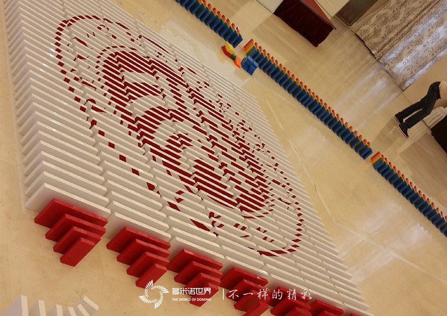 近3萬余枚骨牌,需要在5個小時內(nèi)擺放完成,對于80余位平均40歲以上的與會嘉賓,的確是個不小的挑戰(zhàn)。