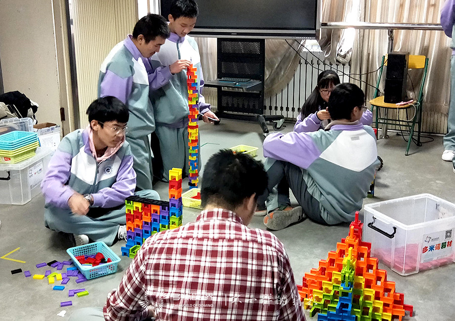 多米諾世界的老師,把同學(xué)們的創(chuàng)意構(gòu)想,設(shè)計(jì)成多米諾骨牌可以呈現(xiàn)的方案,并和同學(xué)們一起規(guī)劃場地,指導(dǎo)同學(xué)們完成骨牌碼放。