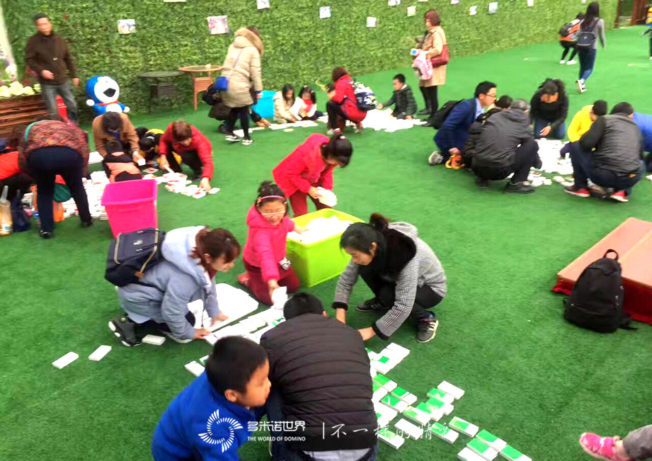 既要拼出圖案,又要成功碼放,還要順利呈現(xiàn),對于參賽的大朋友和小朋友都是個不小的考驗。看著朋友們骨牌碼放過程中的認(rèn)真細(xì)致;骨牌畫面成功呈現(xiàn)時的歡呼雀躍;和骨牌作品合影時的爭先恐后;感受到了朋友們對于園區(qū)活動設(shè)計的肯定,對于多米諾運動的喜愛。