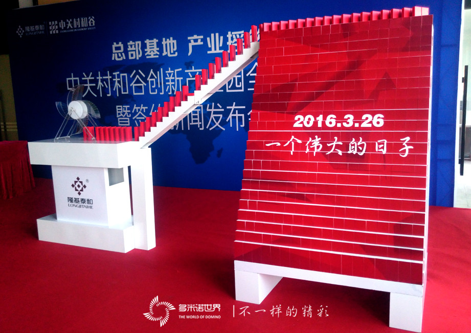 發(fā)布會最激動人心的時刻,隆基泰和地產(chǎn)公司涿州區(qū)域總經(jīng)理曹文倫,宣布涿州中關(guān)村和谷創(chuàng)新產(chǎn)業(yè)園全球招商啟動儀式開始,各位領(lǐng)導(dǎo)共同登臺,為中關(guān)村和谷全球招商儀式啟幕,隨著風(fēng)車的轉(zhuǎn)運,多米諾骨牌順序前行,在一片掌聲中,全球招商儀式正式啟幕。