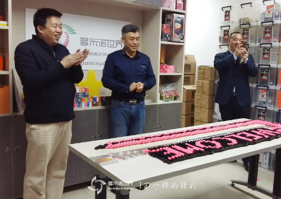 用一連串多米諾的精彩呈現(xiàn)來歡迎大家的到來,令來賓瞬間感受到多米諾運動的魅力,也感受到了多米諾世界團隊的努力與用心,并對多米諾世界未來的發(fā)展寄予了厚望,希望多米諾運動能夠有更大的發(fā)展。