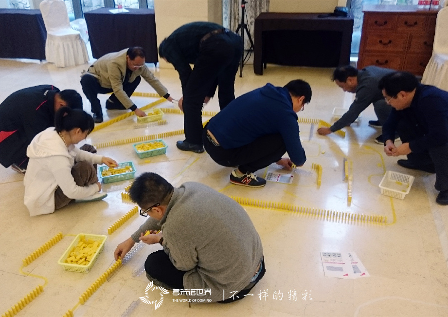 近3萬余枚骨牌,需要在5個小時內(nèi)擺放完成,對于80余位平均40歲以上的與會嘉賓,的確是個不小的挑戰(zhàn)。