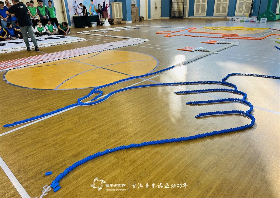 經(jīng)過老師的講解,大家明確了團隊的共同目標,開始分組有序搭建,短短三個小時的時間,大家從對項目的陌生,到默契的配合以及熟練的進行骨牌碼放,完成骨牌畫卷和機關裝置的聯(lián)動,在共同目標的引導和團隊每一位伙伴的努力下,屬于龍沙團隊的多米諾作品搭建完成。