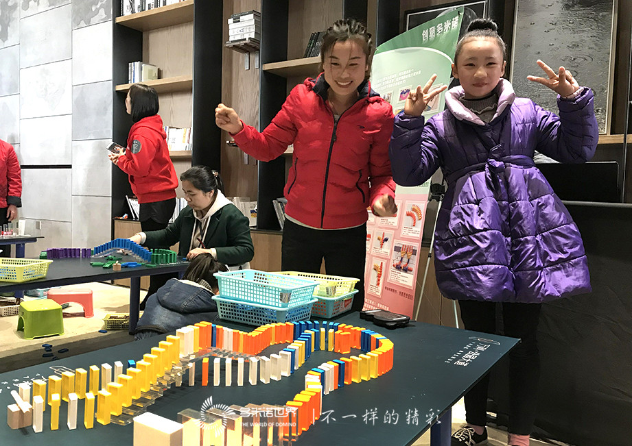 在這個(gè)五彩繽紛的“多米諾世界”,不同顏色不同大小的骨牌,組成的各式各樣的造型、圖案隨處可見(jiàn)。紛繁而至的多米諾愛(ài)好者,或組成參賽隊(duì),在各自的賽場(chǎng)爭(zhēng)分奪秒、展開(kāi)奇思妙想;或流連多米諾體驗(yàn)區(qū),與骨牌親密接觸,久久不舍離去。